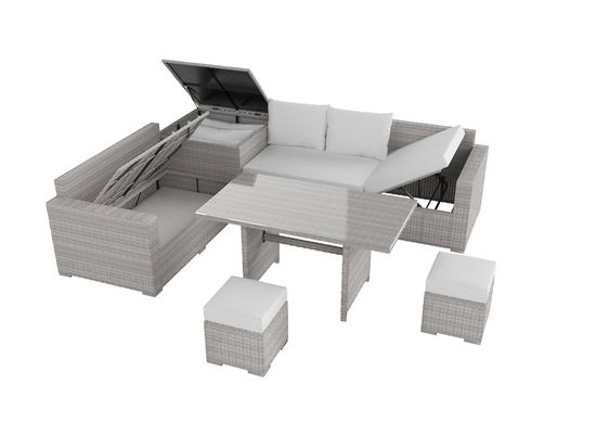 - Bitte beachten Sie, dass der Stauraum konstruktionsbedingt keine 100%ige Wasserabweisung garantieren kann. Wir empfehlen den Wetterschutzbezug zu verwenden, um die Polster nicht ungeschützt den Wetterbedingungen auszusetzen.
