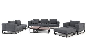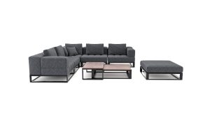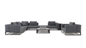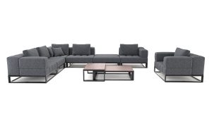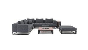 Die Stripe XL Lounge mit Feuertisch kombiniert großzügiges Design mit der wärmenden Eleganz eines Gasfeuertischs. Flexible Stellvarianten und witterungsbeständige Materialien machen sie zur idealen Wahl für luxuriöse Outdoor-Erlebnisse.