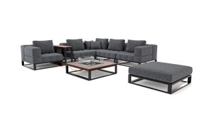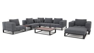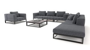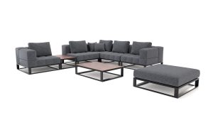 Die Stripe L Loungegruppe bietet modernes Design und hohe Flexibilität durch individuell stellbare Elemente. Mit robustem Aluminiumrahmen und witterungsbeständigen Polstern aus Olefin und Textilene vereint sie Stil und Komfort für unvergessliche Outdoor-Momente.