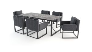 Stripe Dining L - Stilvolles Esstisch-Set aus der Artist Collection. Modernes Design, langlebige Materialien und maximaler Komfort für luxuriöse Dinner im Freien mit Familie und Freunden.