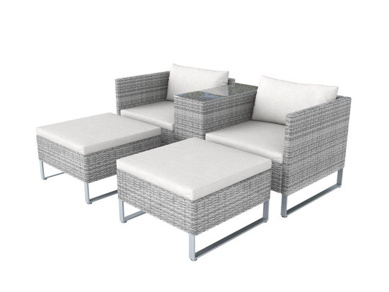 Diese einladende Gruppe zieht alle Blicke auf sich. Sie verfügt über einen Rahmen aus stabilem Aluminium und eine Bespannung aus grau schattiertem Rattan. Dicke Sitzkissen und Rückenpolster komplettieren die gemütliche Sitzgruppe. Der passgenaue Teetisch lässt sich sowohl zwischen die Sitzmöglichkeiten als auch seitlich platzieren, sodass sich besonders viele Stellmöglichkeiten ergeben. Multifunktional und bezaubernd schön schmückt die Rattangruppe Ihren Außenbereich und lädt zum Verweilen ein.